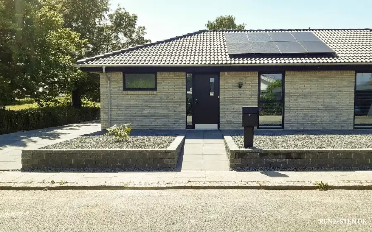 Indgang til hus og forhave bl.a. i sorte betonfliser